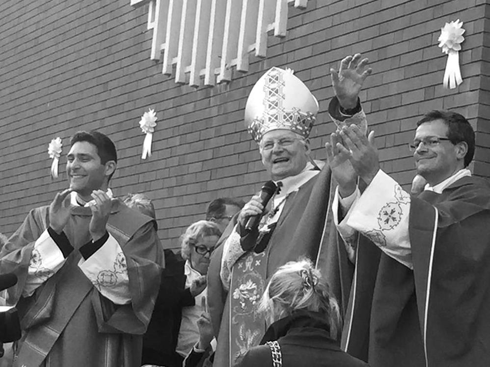 «Grazie per essere qui oggi, in un momento particolare della vita della nostra Comunità, con la nuova diaconìa e l’avvicinarsi dell’Ordinazione di don Fabio che lei ha donato a noi. L’accogliamo con gioia, attesa e festa nella fede, come maestro, padre e guida», dice, nel suo indirizzo di saluto iniziale, il responsabile della Comunità, don Massimo Donghi che concelebra l’Eucaristia con il vicario di zona VII, monsignor Cresseri, i due vicari della CP e l’anziano primo parroco, don Bruno Magnani.