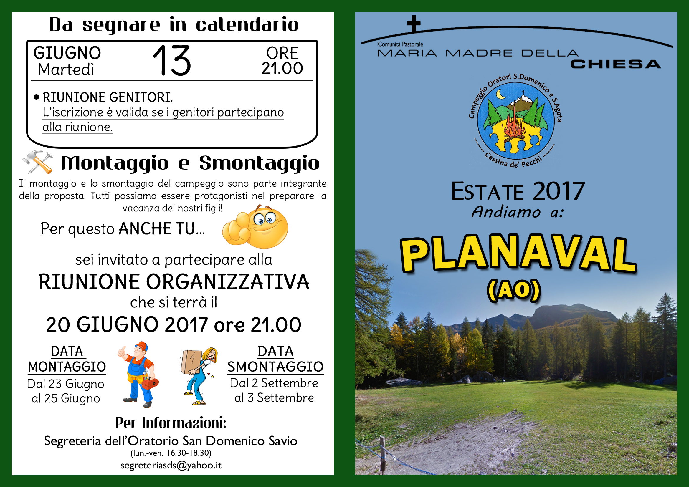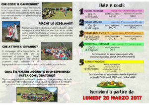 - Dal 19 Luglio al 28 Luglio: CAMPEGGIO RAGAZZI (dalla 3^ elem. alle 3^ media)