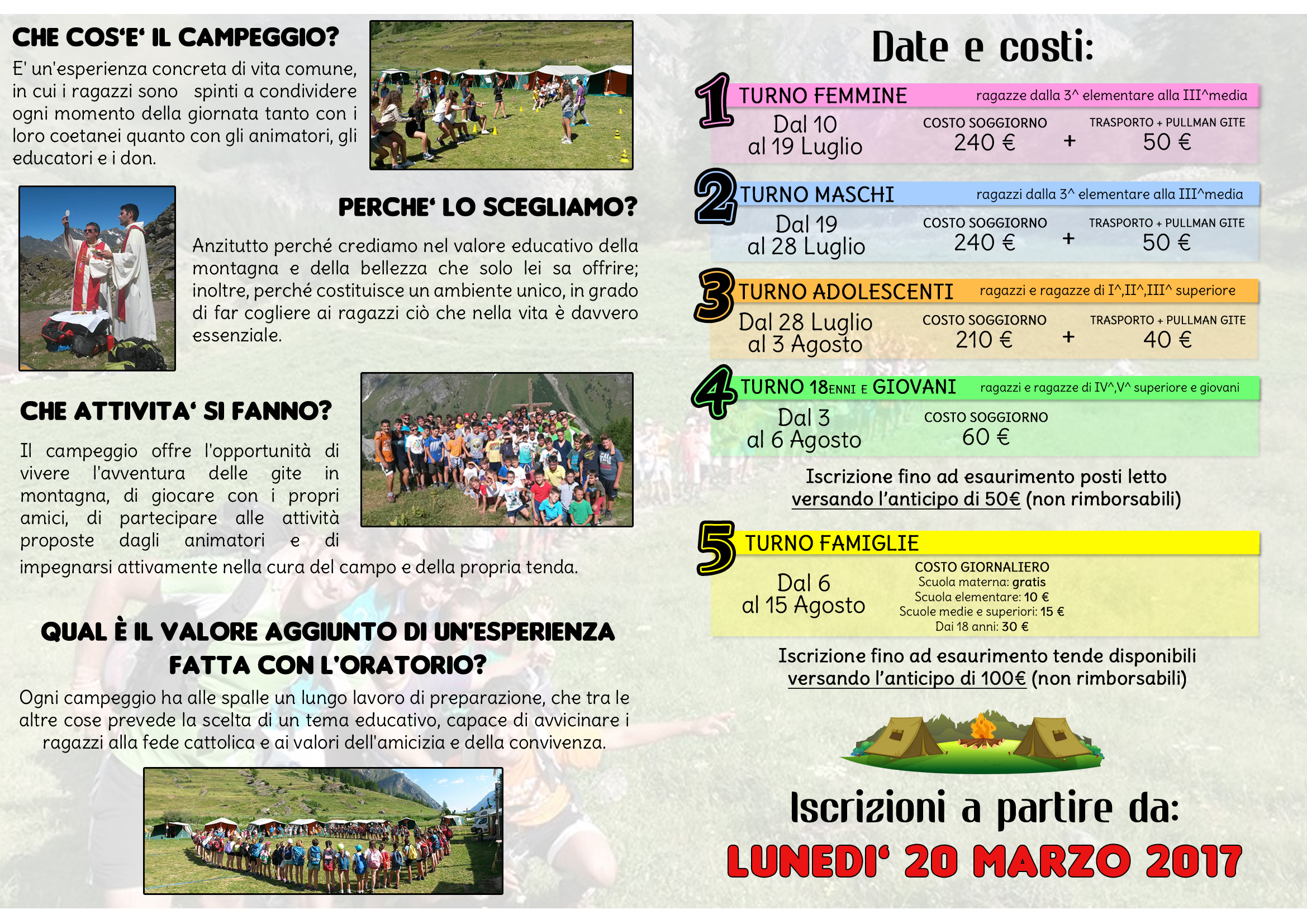 - Dal 6 Agosto al 15 Agosto: CAMPEGGIO per tutte le famiglie