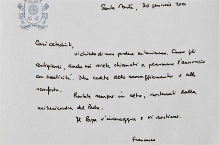 Ti accompagno con la mia stima e la mia preghiera perché il servizio che tu vivi con loro, possa essere un’occasione anzitutto per te di crescere nella conoscenza della fede e nell’amore per la Chiesa.