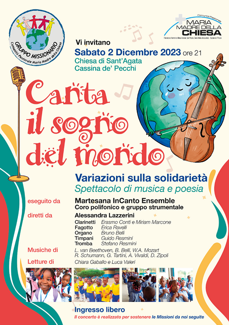 Anzitutto invitiamo la Comunità allo Spettacolo di Musica e Poesia “Canta il sogno del mondo” Sabato 2 dicembre alle ore 21.00 in Chiesa Sant’Agata V.M. con il Coro polifonico Martesana InCanto Ensemble.
